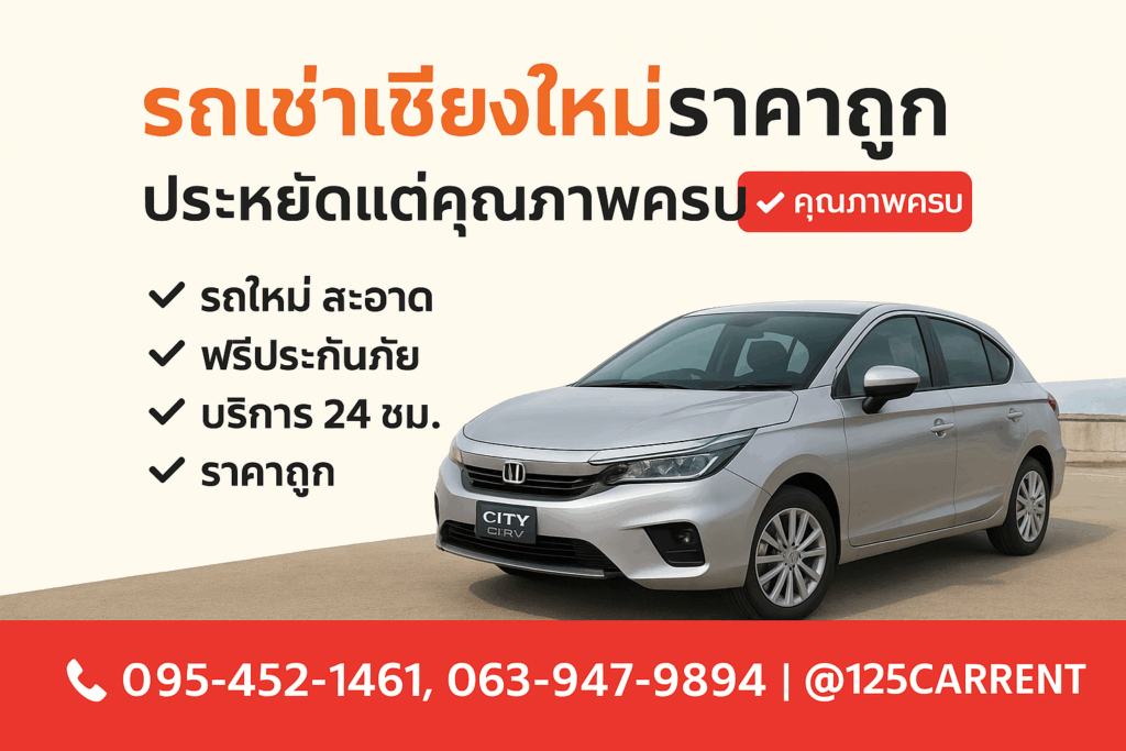 🚗 เลือกรถเช่าขับเองให้เหมาะกับทริป เที่ยวเชียงใหม่ได้สบายทุกเส้นทาง รถเช่าขับเองเชียงใหม่ กำลังเป็นทางเลือกยอดนิยมของนักท่องเที่ยวที่อยากสัมผัสความสวยงามของเมืองเหนืออย่างอิสระ ขับเที่ยวได้ทุกที่ทั้งในเมืองและนอกเมือง ไม่ต้องรอรถหรือกังวลเรื่องเวลา เหมาะกับทั้งคู่รัก กลุ่มเพื่อน และครอบครัว โดยเฉพาะเมื่อเลือกใช้บริการจาก 125 CARRENT ที่มีรถให้เลือกหลากหลายรุ่น ทั้ง ECO, Sedan, SUV และ Hybrid รถทุกคันใหม่ สะอาด และตรวจเช็กสภาพก่อนส่งมอบ เพื่อให้คุณขับเที่ยวเชียงใหม่ได้อย่างมั่นใจตลอดทริป 125 CARRENT ให้บริการรถเช่าคุณภาพดี รถใหม่ สะอาด พร้อมตรวจเช็กก่อนส่งทุกครั้งไม่ว่าจะขับเที่ยวคนเดียว มากับเพื่อน หรือเดินทางเป็นครอบครัวคุณสามารถเลือกรถที่ “เหมาะกับทริป” ได้ง่าย ๆ จากคำแนะนำต่อไปนี้ รถเช่าขับเองแต่ละประเภท เหมาะกับใคร? เพื่อช่วยให้คุณเลือกได้ตรงใจ เรามาดูประเภทของรถเช่ายอดนิยมในเชียงใหม่พร้อมจุดเด่นและคำแนะนำการใช้งานจริงกันครับ 👇 1. ECO Car – ประหยัดน้ำมัน เหมาะกับขับในเมือง 🚗 รุ่นแนะนำ: Toyota Yaris, Honda Brio, Nissan Almera […]