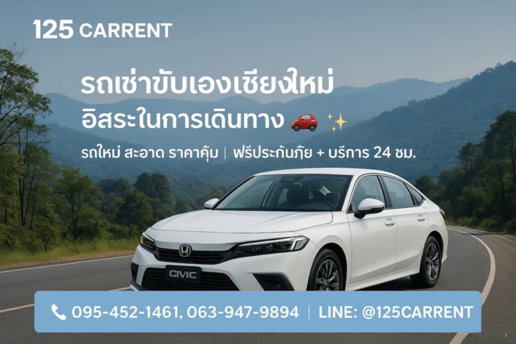 เชียงใหม่เป็นจังหวัดที่ดึงดูดนักท่องเที่ยวทั้งชาวไทยและต่างชาติด้วยเสน่ห์ของธรรมชาติ วัฒนธรรม และวิถีชีวิตล้านนาที่อบอุ่น สำหรับหลายคน สิ่งที่จะทำให้การท่องเที่ยวเชียงใหม่สนุกและสะดวกที่สุดคือการมี รถเช่าเชียงใหม่ขับเอง เพราะการขับรถเอง หมายถึงคุณสามารถออกเดินทางได้ทุกเวลา แวะตรงไหนก็ได้ และไม่ต้องพึ่งพารถสาธารณะหรือทัวร์ที่มีตารางเวลาแน่นอน ทำไมต้องเลือกรถเช่าขับเองในเชียงใหม่? ✅ อิสระเต็มที่ คุณเป็นคนกำหนดเส้นทางและเวลาเอง ไม่ต้องกังวลเรื่องการนัดหมายกับคนขับหรือการจอดพัก ✅ ประหยัดค่าใช้จ่าย ถ้าเดินทางกันหลายคน การเช่ารถขับเองจะถูกกว่าการจ้างรถพร้อมคนขับหรือนั่งแท็กซี่หลายรอบ ✅ สะดวกและรวดเร็ว รับรถจากสนามบินหรือโรงแรมแล้วออกเดินทางได้ทันที ✅ ปลอดภัยและเป็นส่วนตัว คุณสามารถเลือกรถที่ตรงกับความต้องการ และมั่นใจในความสะอาดและความปลอดภัยของรถ ประเภทของรถเช่าขับเองที่นิยมในเชียงใหม่ ตัวอย่างทริปยอดนิยมเมื่อใช้รถเช่าขับเองเชียงใหม่ เคล็ดลับการขับรถเช่าในเชียงใหม่ให้ปลอดภัย ทำไมต้องเลือก 125 CARRENT? โปรโมชั่นพิเศษ 🚘 📌 จองรถเช่าเชียงใหม่ขับเองวันนี้เริ่มต้นเพียง xxx บาท/วันพร้อมฟรีประกันภัย + บริการช่วยเหลือฉุกเฉิน 24 ชม. ติดต่อ 125 CARRENT 📞 095-452-1461, 063-947-9894📲 LINE: @125CARRENT